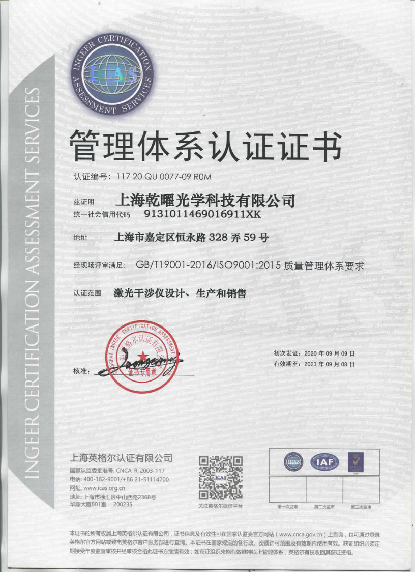 質(zhì)量管理體系認(rèn)證證書
