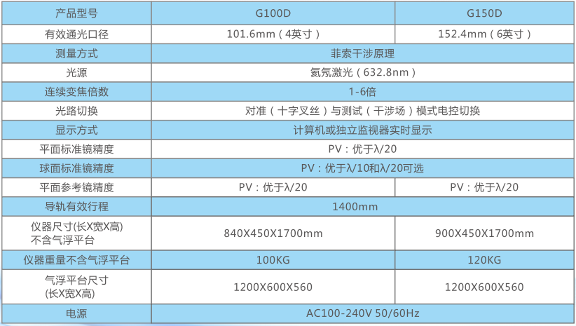 G100D和G150D立式激光干涉儀的有效口徑分別為101.6mm(4英寸)和152.4mm(6英寸)。乾曜光學(xué)將世界先進(jìn)干涉測(cè)量技術(shù)與大尺寸、大曲率鏡片測(cè)量的市場(chǎng)需求相結(jié)合,優(yōu)化光學(xué)系統(tǒng)和機(jī)械系統(tǒng)結(jié)構(gòu),將高精度的成像系統(tǒng)和圖像采集系統(tǒng),穩(wěn)定的激光干涉技術(shù)和1-6倍圖像放大功能等一系列高精技術(shù)融合,使大口徑球面干涉儀即適用于光學(xué)實(shí)驗(yàn)室的精密測(cè)量,又適用于光學(xué)車間的大批量檢驗(yàn)。高精度和成本優(yōu)勢(shì),有利于客戶提高產(chǎn)品品質(zhì),同時(shí)節(jié)省成本。