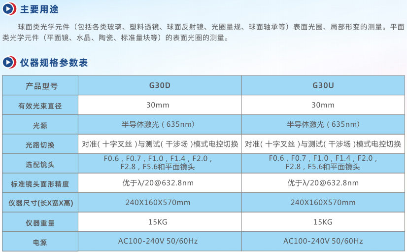 G30D倒立式激光干涉儀通光口徑為30mm,鏡頭下置,儀器具備良好的隔振功能,適合車間大批量球面透鏡和平面鏡的快速檢驗(yàn)。