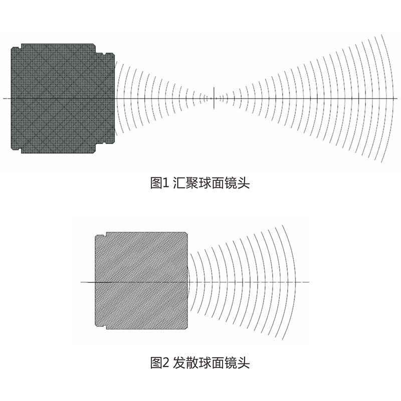 球面標(biāo)準(zhǔn)鏡分為匯聚型和發(fā)散型。從匯聚球面鏡頭出射的光束為匯聚光束,經(jīng)過(guò)鏡頭 焦點(diǎn)后變?yōu)榘l(fā)散光束,可以用來(lái)測(cè)量常規(guī)的凸面或者凹面光學(xué)元件,如圖1;從發(fā)散鏡頭出 射的光束為發(fā)散光束,適合測(cè)量大曲率半徑的凹面光學(xué)元件,不能測(cè)量凸面,如圖2。
